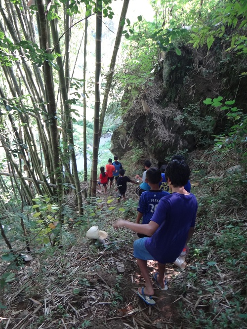 2) Awas jangan sampai terpeleset ya…menuruni jurang saat trekking begini harus pelan dan hati-hati jalannya.