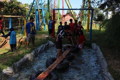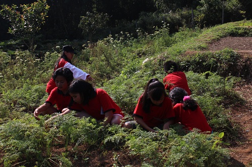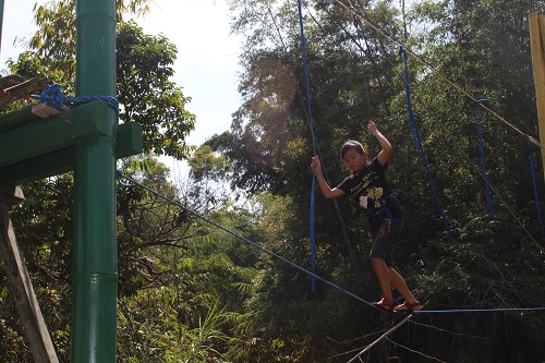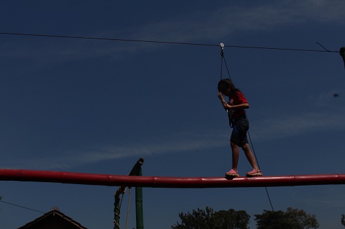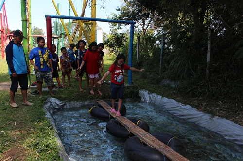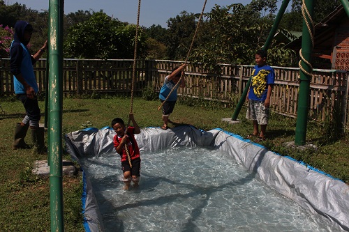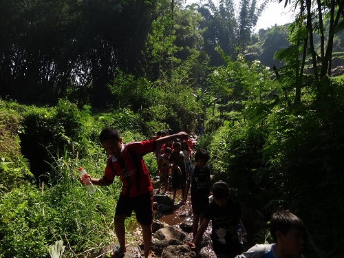 Setelah kenyang dan beristirahat sejenak, acara trekking menyusuri alam pun dimulai, dengan berbagai permainan kelompok yang mengasyikkan sepanjang perjalanan. Selanjutnya keberanian dan kegigihan kembali ditantang dalam aneka aktivitas outbound yang diakhiri dengan ber-flying fox alias melayang di atas lembah sebagai acara favorit.