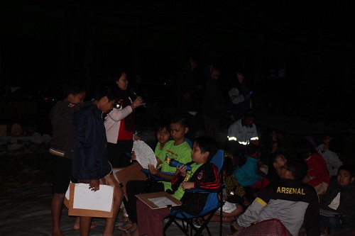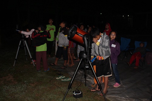 Tak ketinggalan acara yang dinanti-nanti yaitu pengamatan planet-planet di tata surya dengan dua buah teleskop dan belajar mengenali rasi-rasi bintang di langit malam. Acara jurit malam menyusul, menemukan kelemahan dan kelebihan diri, yang diakhiri dengan api unggun sambil membakar jagung bagi yang masih belum mengantuk.