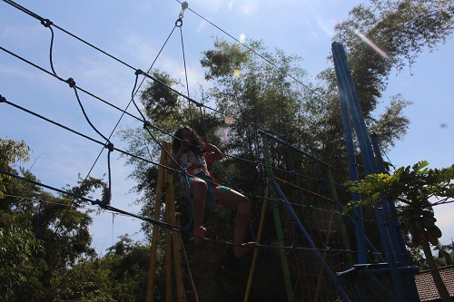 4) Kekuatan lengan dan kaki sangat perlu kupertahankan untuk menyusuri jaring-jaring ini.