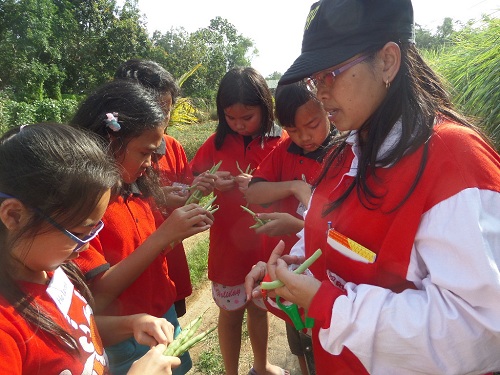 10) Grup “go green” yang anggotanya cewek semua menirukan kakak pembina mengupas serat buncis dengan benar.