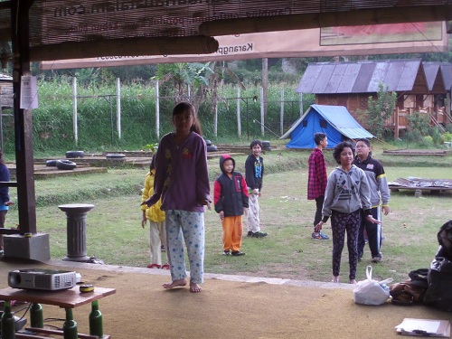 1)Ice-breaking di pendopo sebagai awal rangkaian acara kemping. Setelah pembagian kelompok dan saling berkenalan, setiap kelompok menampilkan yel-yel atau tarian kreasi khasnya. Begitulah anak-anak, cepat akrab dan kompak.