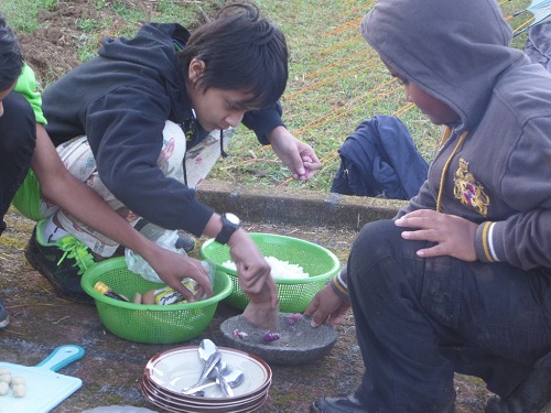6) Naah, nasi goreng kami sudah hampir siap…asyiknya dingin-dingin menikmati sarapan buatan sendiri di alam terbuka bersama teman sebaya….kenangan tak terlupakan.