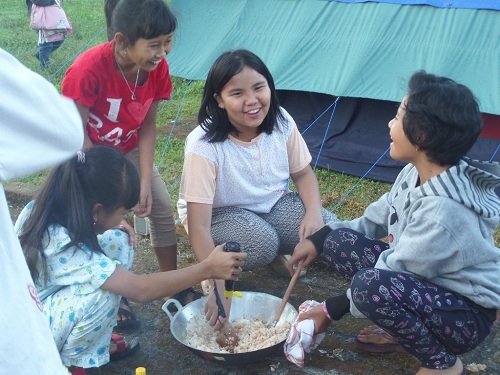 Di hari kedua, setelah selesai bersenam pagi bersama, semua peserta camp memasak nasi goreng bersama menggunakan api dari kayu. Bersama teman sekelompok menyiapkan bahan, mengiris bumbu, dan mengaduk nasi menjadi hidangan sarapan lezat.