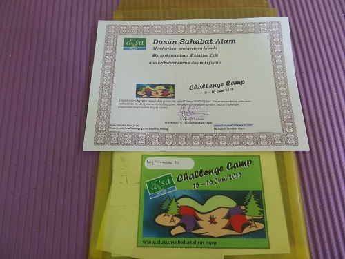3) Sertifikat keikutsertaan yang diberikan kepada setiap peserta challenge camp dengan folder untuk menyimpan hasil kerja selama kegiatan yang diikuti.